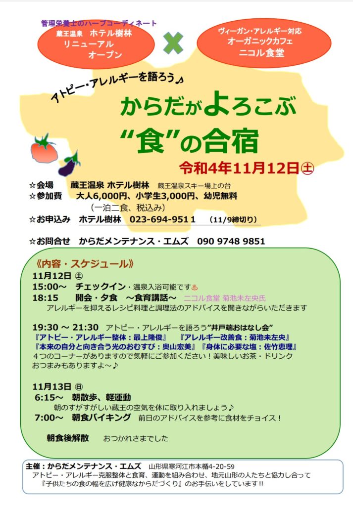 蔵王温泉にて”食”の合宿を開催します(参加者募集中)