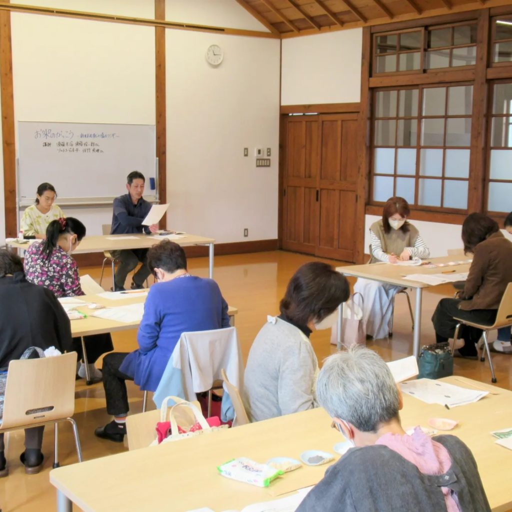 講座は大人のための学びの場ということで、参加者12名に須藤さんからはお米の家系図の話、私から塩のトリビア、そして新米3種と6種類の塩を使ったおむすび作りをお伝えしました。